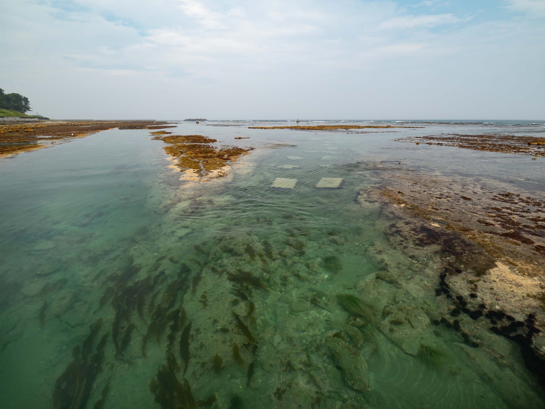 コンブなどの藻場は、二酸化炭素が吸収・貯留される「ブルーカーボン」のとしての機能を持ち、温室効果ガスの軽減に寄与します。未利用資源であるうに殻を活用し「施肥ブロック」を製造し、海中に沈め藻場の再生活動を行っています。現在、北海道の積丹(しゃこたん)町と共同で施肥ブロックの改良開発を実施しており、この施肥ブロックを用いることで海藻が繁茂することが確認できました。