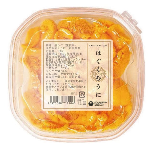 2022年12月より発売の「はぐくむうに」は、岩手県洋野町内の漁協および北海道道南地域の漁協、漁師の皆様と連携し生まれた製品です。北三陸ファクトリーでは、北海道大学、研究機関と共に開発した「うに再生養殖」技術の普及、国内外での横展開を目指し取り組んでおります。